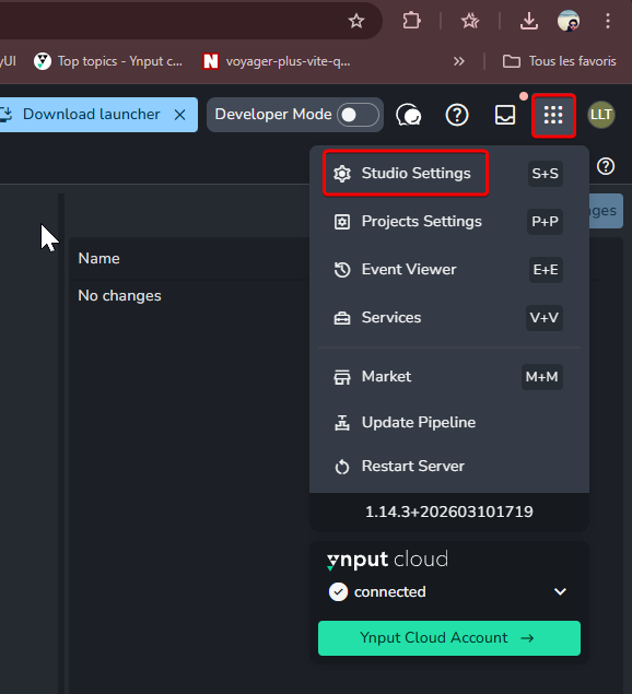 Accéder aux Studio Settings