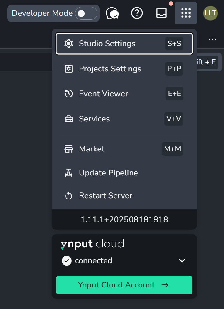 - Studio settings ( S + S ) : Settings du studio pour tous les projets