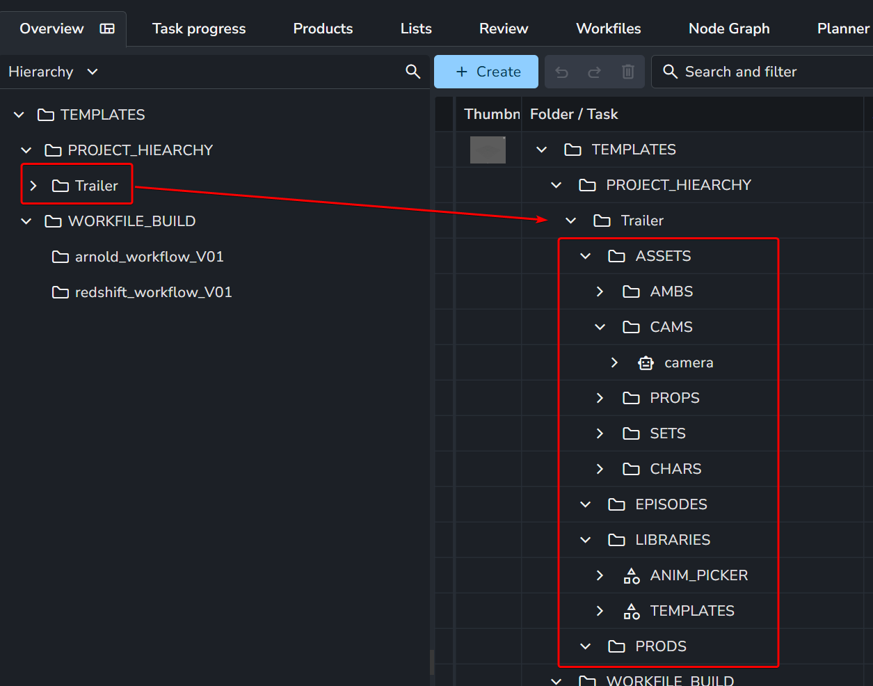 Chaque dossier dans le folder : project_hiearchy representerons un template de type de projet.