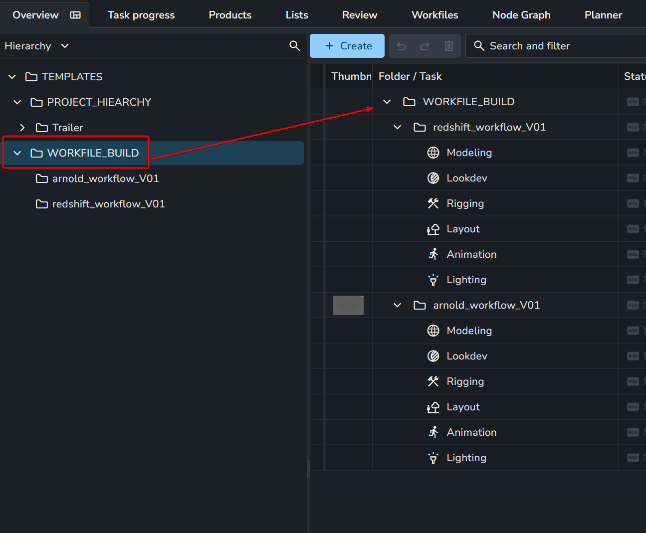 Dans l'image ci dessus, on aura par exemple un dossier "arnold_workflow_V01" et "redshift_workflow_V01".