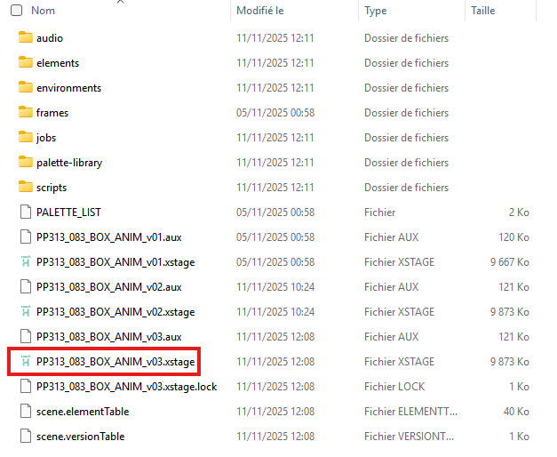 Exemple : Dans cette situation, uniquement la v03 sera exportée.
