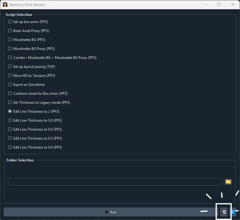 On peut aussi y accéder en cliquant sur ce bouton dans l'interface d'Harmony Batcher :
