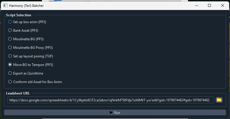 Le script lit la colonne L de l'onglet BG de la leadsheet qu'on lui donne en entrée afin d'obtenir la liste des BGs qu'il doit déplacer. Ensuite il cherche chacun de ces BG dans le dossier M:\POMPON\[POMPON] Bank_Library_Outils\04_Backgrounds\## PSD.